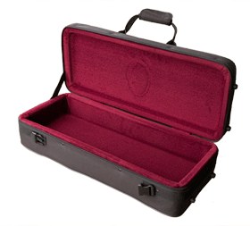 Der sehr stabile und gut isolierende Kunststoffkern ist aussen mit schwarzem Stoff bezogen und innen mit rotem Samt ausgestattet.