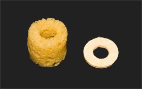 Bei dem Material handelt es sich um ein (bei Lieferung) stark komprimiertes Schwamm-Gewebe, welches sich beim Kontakt mit Feuchtigkeit stark ausdehnt.