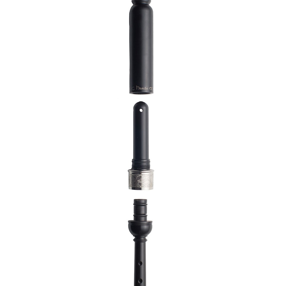 Der sehr schön gearbeitete Practice Chanter ist mit einer gravierten Nickel Ferrule und einer Kunstelfenbein-Sole ausgestattet. Erweitere Tonlöcher vermitteln ein realistisches Griffgefühl wie beim GHB-Chanter.